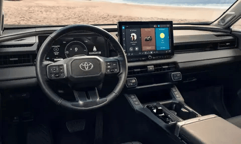 內飾部分,根據海外車型來看,和現款相比,屏幕變大了,物理按鍵變小了,檔把變小了,整體設計更為方正硬朗,小編個人認為是更為精致板正了很多。